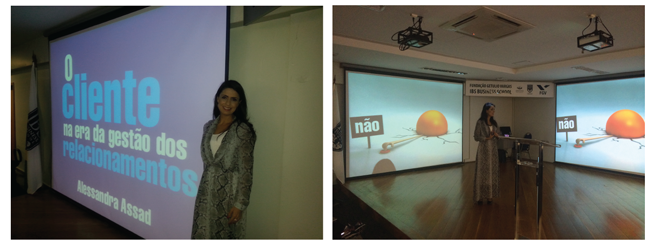 Em sua palestra Alessandra destacou pontos relevantes ao tema, explorando bem e de forma ilustrativa os exemplos em suas abordagens, considerando a extensa linha por trás do ambiente comercial, nestes novos tempos. Segundo a palestrante o foco no cliente deve ser uma disciplina exercida pelas empresas a medida que devam atender as necessidades “reais” e específicas de seu público, uma vez identificado como target. Em oposição ao fato de algumas empresa insistirem em vender o que sempre venderam, o que fabricam, sem olhar com atenção para a “verdadeira” necessidade de seu mercado consumidor.