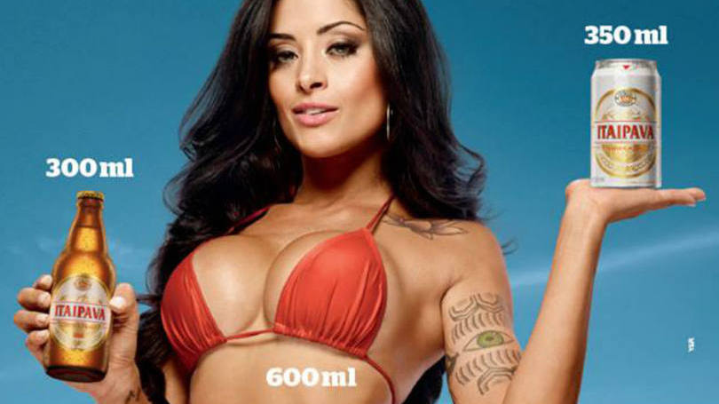 Em paralelo, um cartaz da Itaipava polêmico com a Aline Riscado, estrelando o “Verão” em comerciais da marca, performa com um trocadilho visual da quantidade de cerveja em lata, garrafa e seu silicone. Material que foi solicitado pelo Conar a ser retirado do ar por ser considerado “sexual demais”, e acatado pela empresa. Em outra versão da peça, seguindo mesmo conceito, foi liberada, por argumento validado de “humor”.