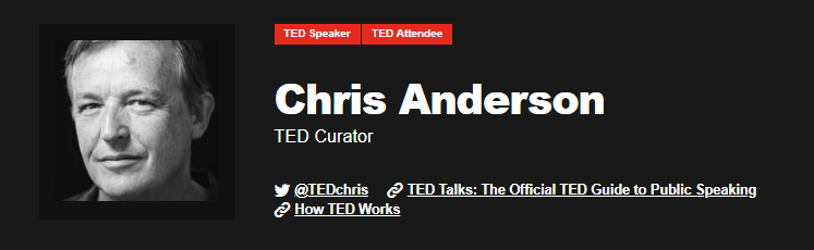 Foi praticamente impossível não terminar o livro e correr para o youtube e ao próprio site do TED para pesquisar estas referências, que estão também descritas ao final do livro. Anderson ainda completa com um link para esta playlist no próprio site do TED.